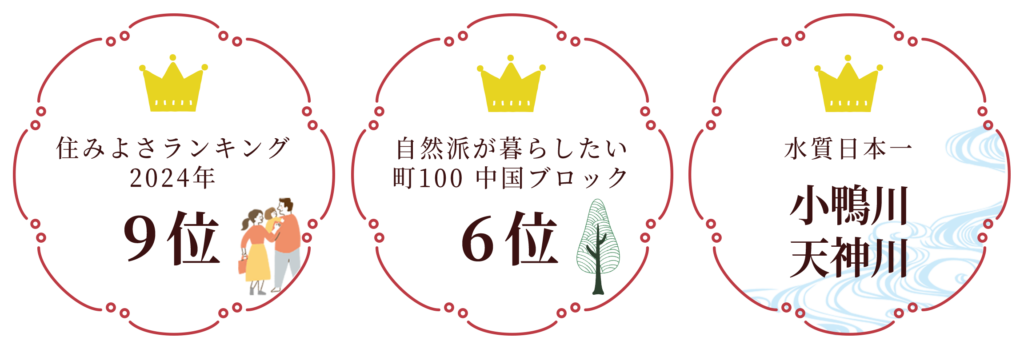 東洋経済新報社が毎年発表している「住みよさランキング」では、2024年は総合9位、中四国編では第1位にランクしています。